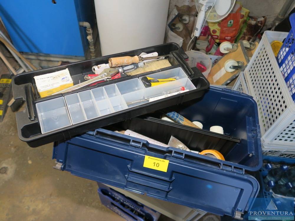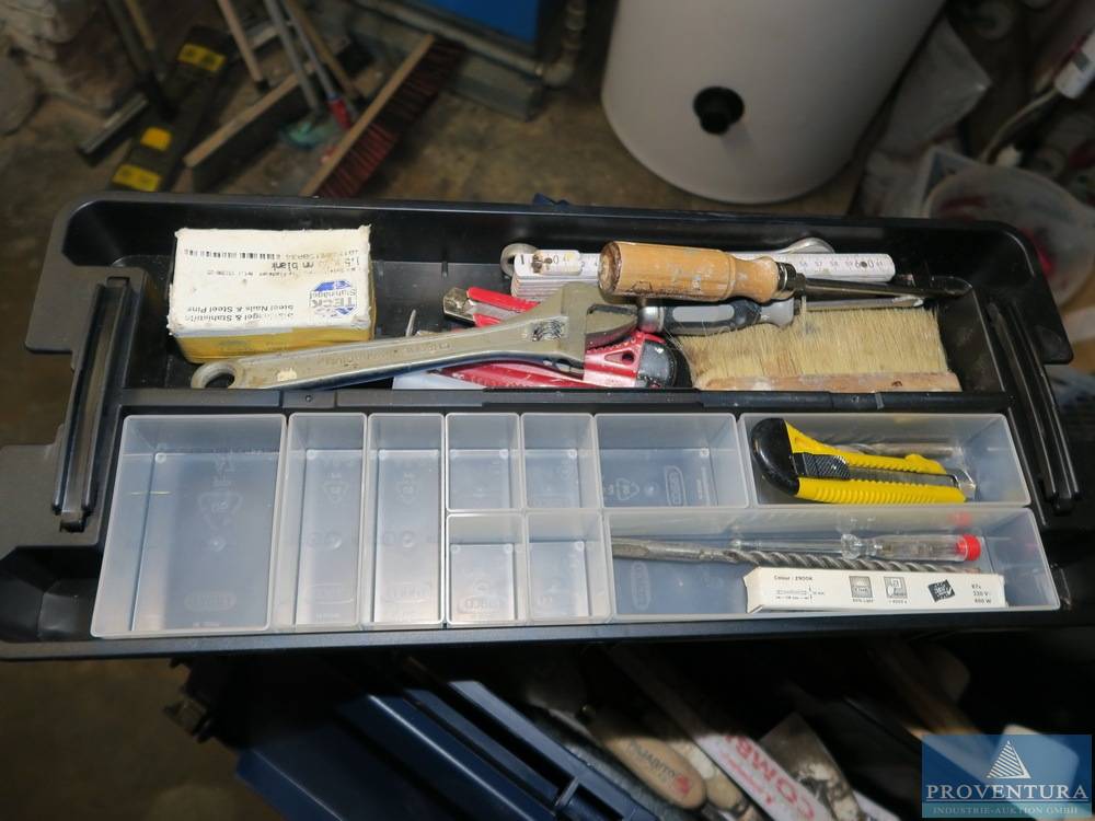 Kunststoff-Handwerkzeugkoffer blau, gefüllt m. Kleinmengen Handwerkzeugen, Außenmaß ca. 60x25x30 cm