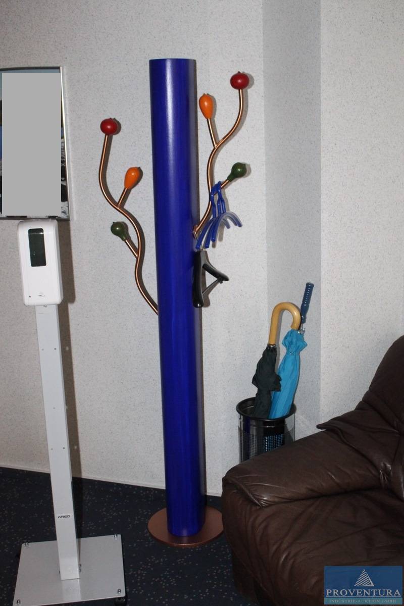 Designer-Kleiderständer mehrarmig Holz ca. 175 cm, angeschafft 2003 für 940 EUR netto, dazu Schirmständer