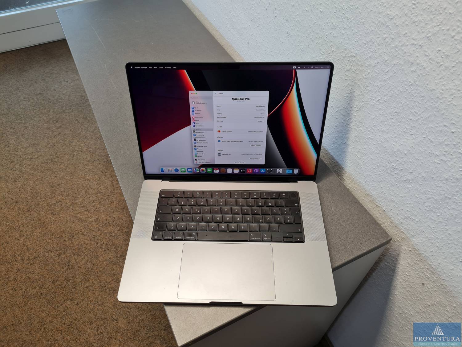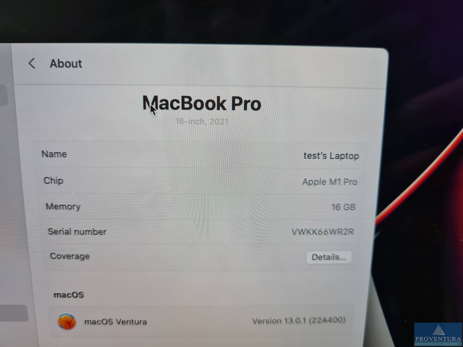 Laptop APPLE MacBook Pro 16", M1, Bj. 2020, S/N VWKK66WR2R, Apple M1 Pro, 16 GB RAM, 500 GB SSD, macOS Ventura, Netzteil und Kabel