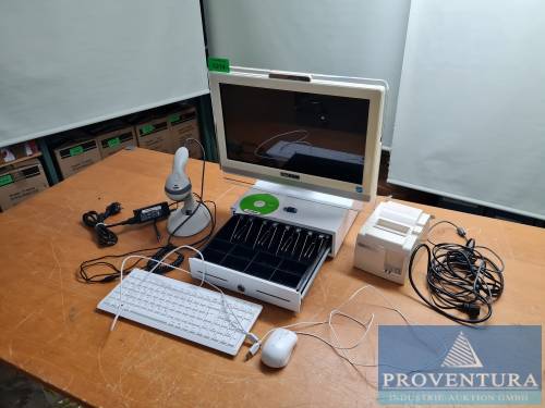 PC-System aus ehemaligem Kassenarbeitsplatz COMHAIR, S/N MSAA8BGBS0102352, Intel Celeron N3160, 4 GB RAM, 120 GB SSD, ohne Software, Nicht zur Verwendung im Sinne des § 146 AO geeignet und/oder bestimmt, 1x Comcash Dongle, Kassenlade weiß mit Schlüssel,1x Tastatur und Maus MSI QWERTZ, 1x Barcodescanner HONEYWELL MS9520 , Bondrucker STAR TSP100 mit Kabeln