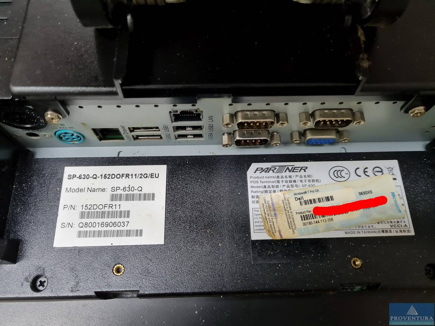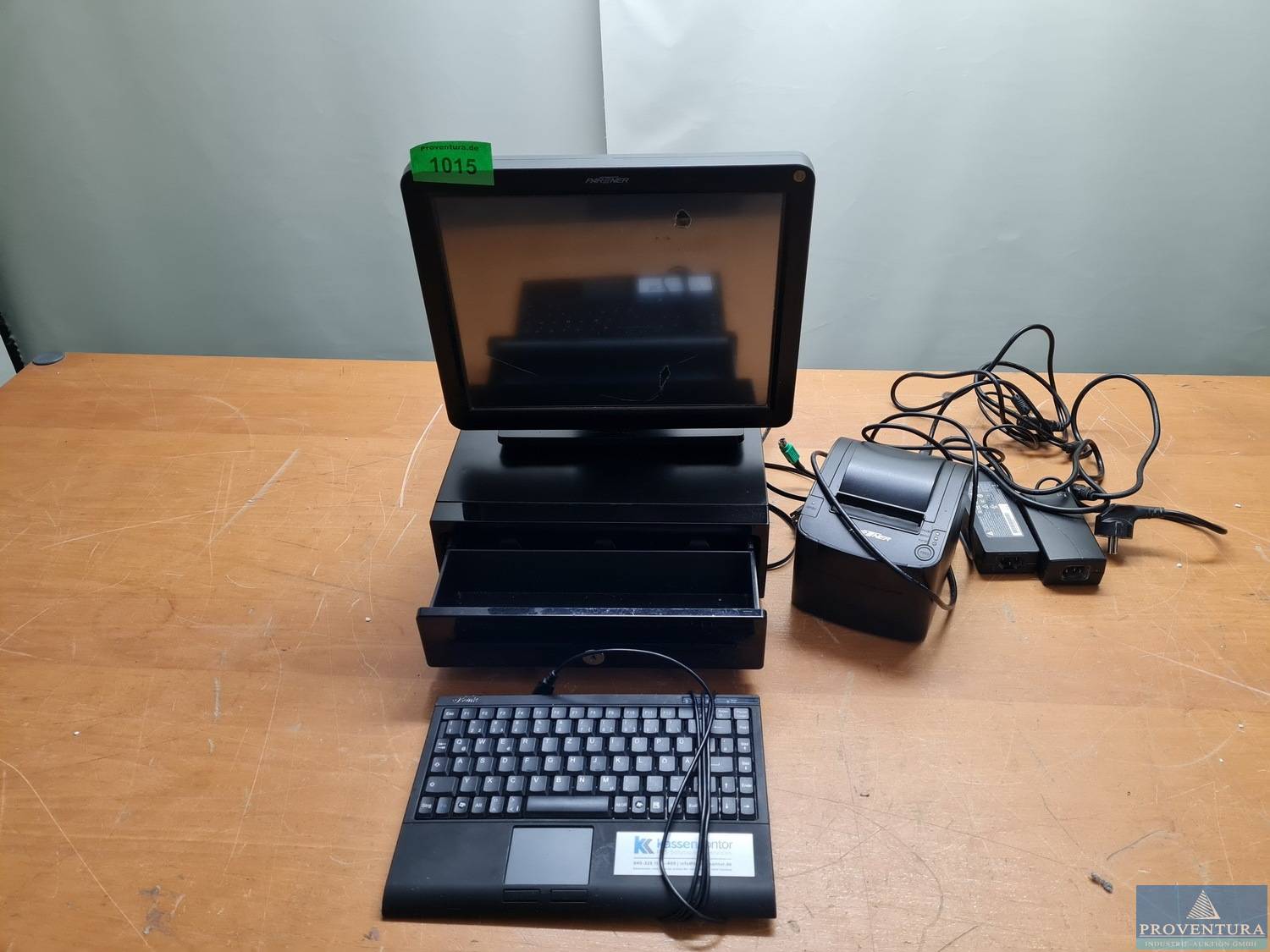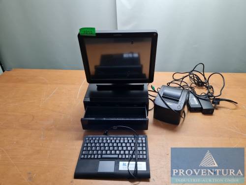 PC-System aus ehemaligen Kassenarbeitsplatz PARTNER SP-630-Q, S/N Q80016906037, intel Celeron, 4 GB RAM, 320 GB HDD Plastikschutz Display hat ein Loch, Display funktionsfähig , ohne Software, Nicht zur Verwendung im Sinne des § 146 AO geeignet und/oder bestimmt, 1x Kundendisplay, 1x Kassenlade schwarz ohne Schlüssel, 1x Tastatur, 1x Bondrucker PARTNER RP-100-300II,