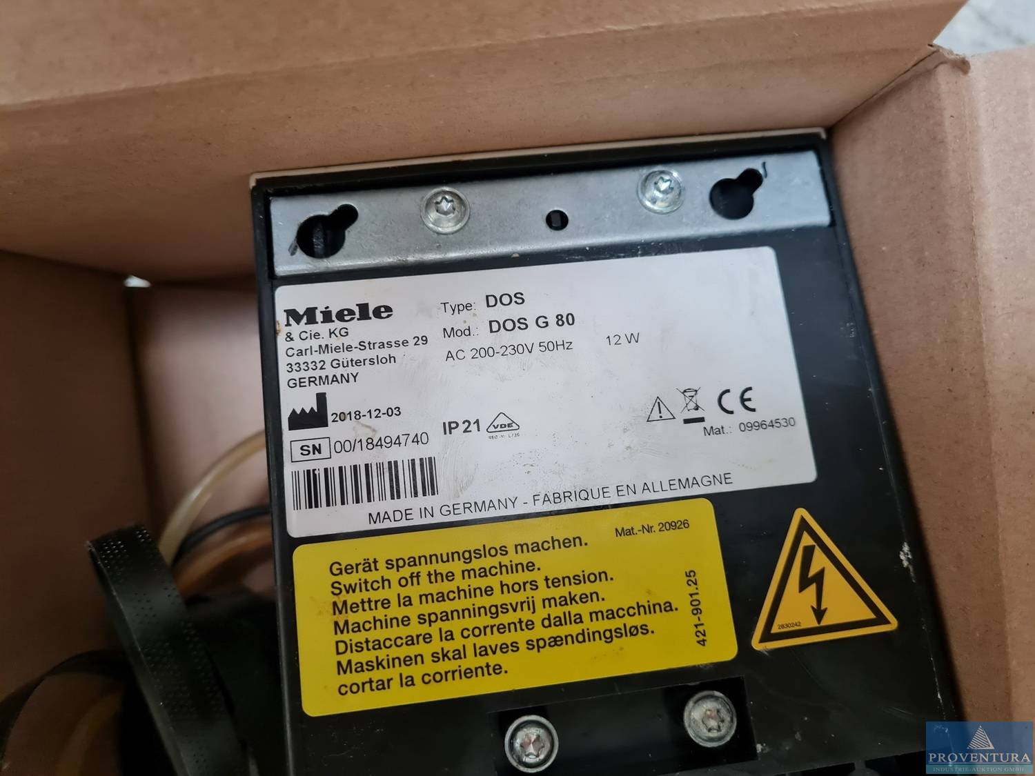 Gastrospülmaschine MIELE Professional HYGIENEplus GG06 PG 8057, S/N 00/147373764, 1x MIELE Dosiermodul Dos G 80, angeschafft 01.2019 für ca. 4.500 € Die Ausgabe erfolgt an der LKW Laderampe, Gustav-Bielefeld-Straße 2,Achtung: Laderampenhöhe ca. 1,10m! Fahrzeug mit Hebebühne (LKW) oder "Sprinter" mit Hubwagen oder Rampen erforderlich (Bei einem anderen Fahrzeug benötigen Sie genug kräftige Personen zum Herunterheben der Ware)