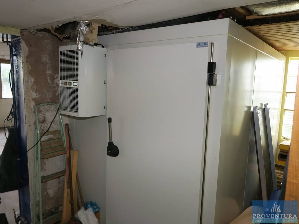 Kühlzelle ROMA, Innenmaß ca. 232x160x200h cm, eigener Boden, Sandwichwände geklebt, Kühleinheit RIEDLE, Kühlung bis 4 Grad, kein Typenschild vorgefunden, optisch sehr wenig gebraucht, ca. 15 Jahre alt