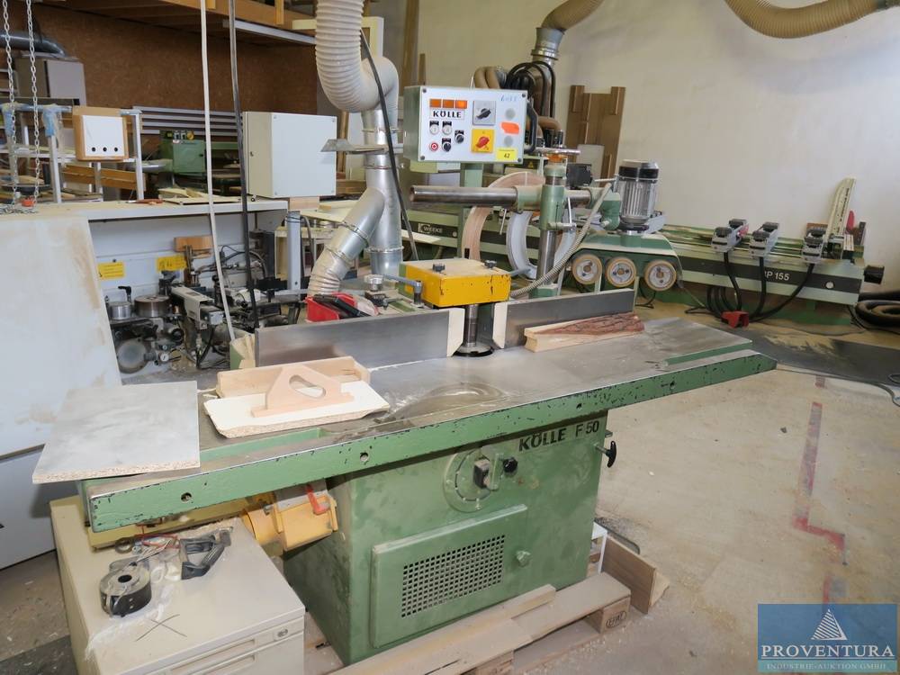 Tischfräse KÖLLE F 50 Bj. 1994, ca. 8.8 kW, Masch.-Nr. 888, Tischlänge ca. 2.100 mm, Tischbreite ca. 400 mm, 3-Rollen-Vorschub