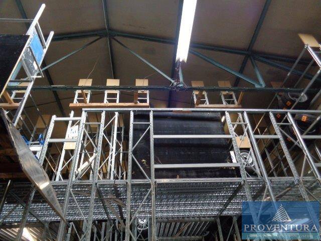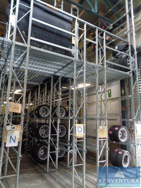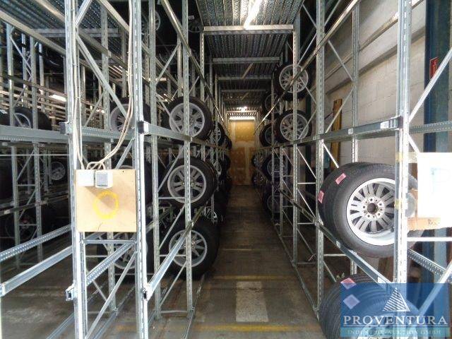 Reifenlageranlage GENIUS für ca. 1.713 Radsätze, ca. 6.852 Räder, angeschafft vor über 10 Jahren, Typenschild nicht vorgefunden, 2 Geschosse Gesamthöhe 6.500 mm, Ausstattung Erdgeschoss: ca. 181 lfm Regal, Höhe ca. 3.400 mm Tiefe ca. 400 mm, 4 Lagebenen m. Trägerpaaren, Ausstattung Obergeschoss: ca. 164 lfm Regal, Höhe ca. 3.000 mm, Tiefe ca. 400 mm, 4 Lagerebenen m. Trägerpaaren, Laufgangbelag aus gelochten u. verzinkten Stahlpaneelen, zul. Belasung ca. 250 kg/m² gleichmäßig verteilter Last, Stahlunterkonstruktion, ca. 9 lfm Geländer (Handlauf, Fuß- und Knieleiste), 1 St. Übergabestelle m. Schiebegeländer, 1 St. Treppe für Regalanlage, 1 St. Laufgang (LxB) 16.60x1.4 m, 1 St. Laufgang (LxB) 2.65x1.5 m, ca. 48 lfm Reifenlagerebene, ohne Reifen