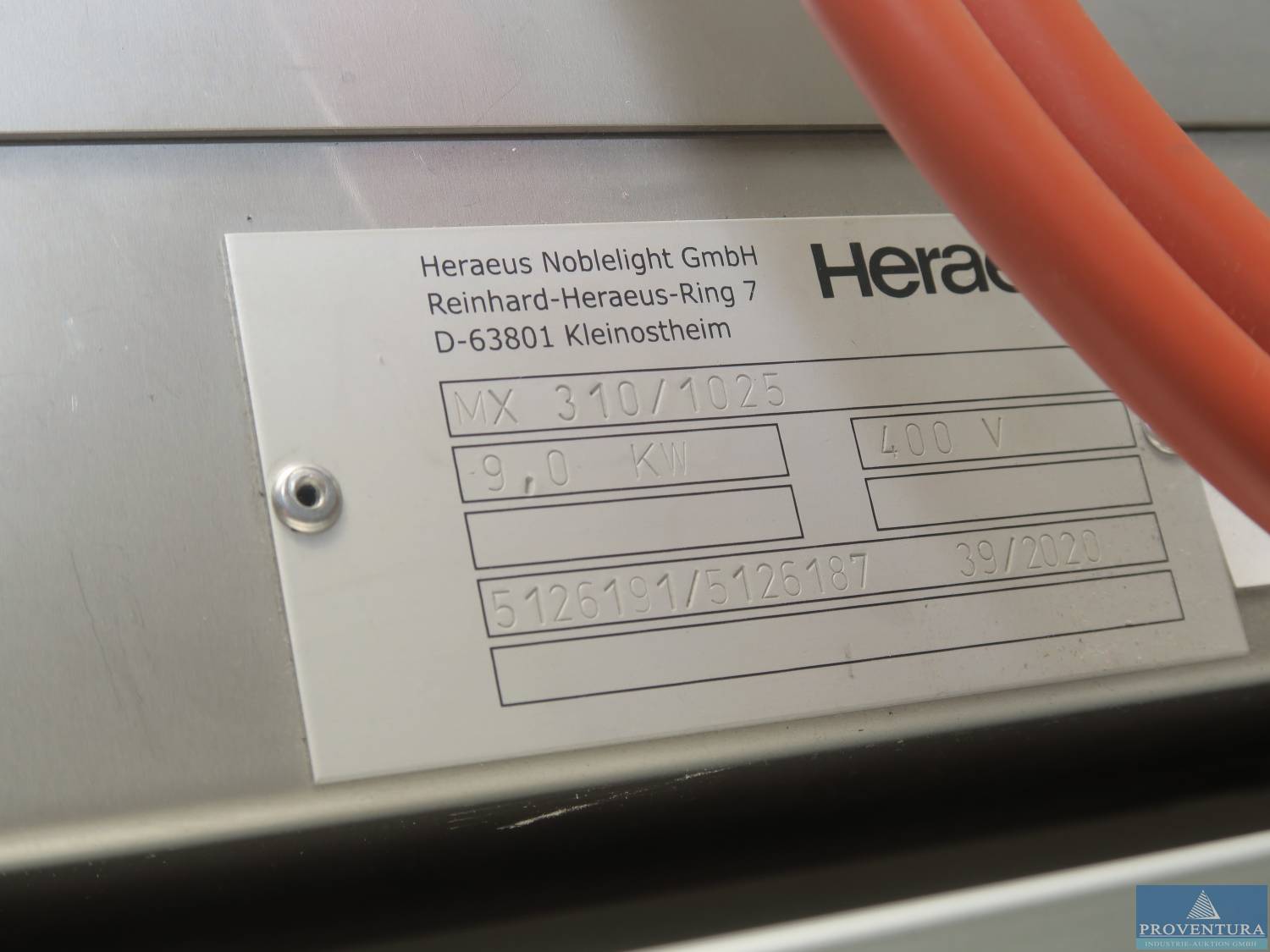 Durchlaufofen HERAEUS, Bj. 2020, Arbeitsbreite ca. 100b cm, Gesamtlänge ca. 600 cm, Infrarotmodul HERAEUS MX 310/1025, 9 kW, 400 V, 4 Infrarotmodule HERAEUS MX 1200/1025, 15 kW, 400 V, IR-Erwährmungssystem HERAEUS P-70 kW, 400 V, Schaltschrank HERAEUS CX 69, 70 kW, 400 V, 110 A, angeschafft 2020 für € 89.000,- netto, vermutl. inkl. Montage