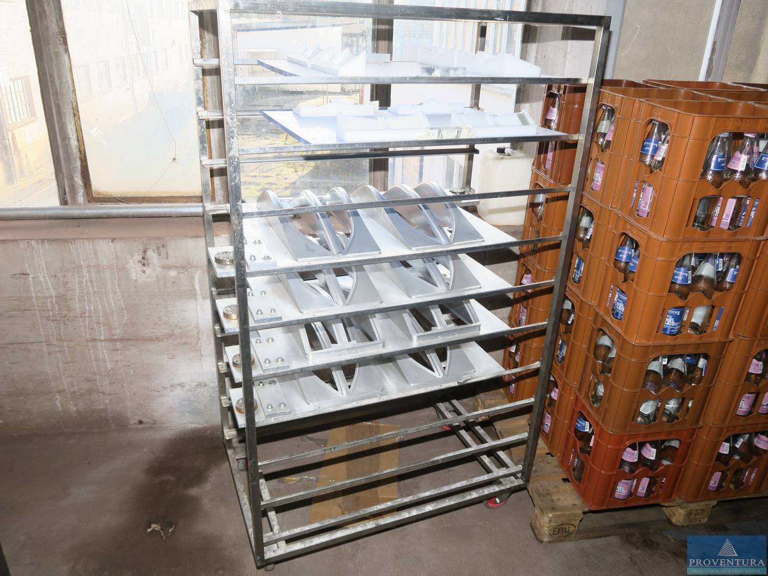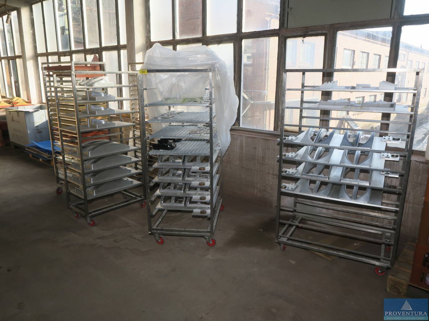 Stikken-/Tablettwagen Edelstahl, 2 St. je ca. 75x47x185h cm, 1 St. ca. 80x47x170h cm, 2 St. je ca. 100x65x170h cm, ohne Inhalte
