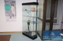 Verkaufsvitrine Glas/Holz ca. 90bx195hx40t cm, m. Prothesen- u. Orthesenteilen, verschliessbar, Schlüssel