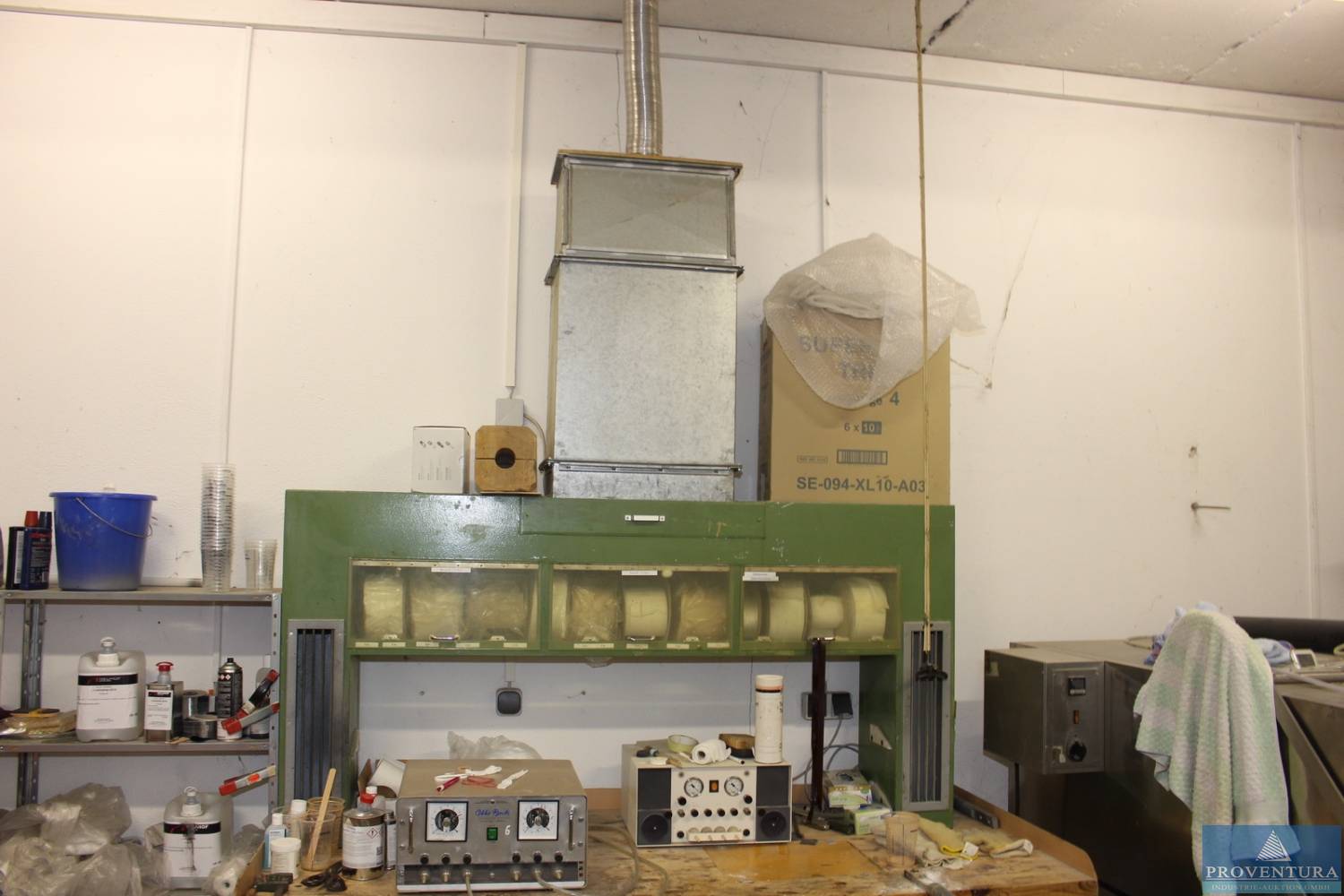 Absaug-Arbeitstisch ca. 180 cm, Absagungstutzen seitlich, ohne Inhalte