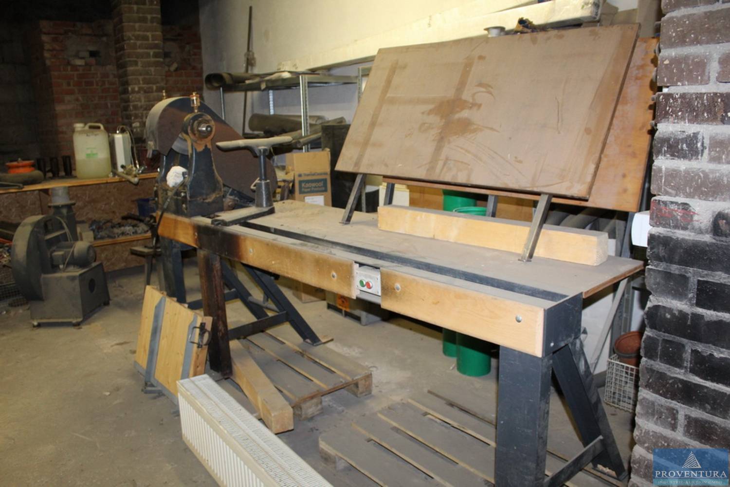 Drechselbank für Holz, Hersteller nicht ablesbar, möglicherweise Eigenbau oder Maschinensonderbau, mit Elektromotor Beberweil, Typ 2/4, SN. 13853, Tropenisoliert ca. 250 x x80 x 145 cm, Aufnahme für Welle ca. 40 mm