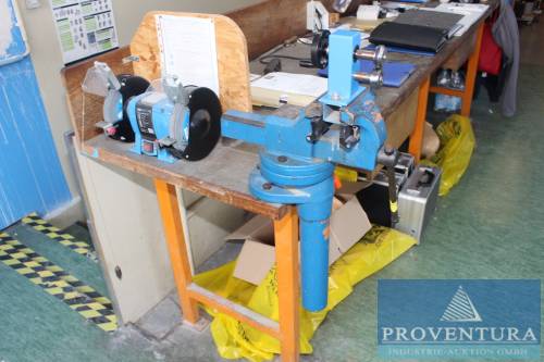 Schraubstock PEDDINGHAUS Elevator 135, mit eingespannter Haltevorrichtung, höhenverstellbar, dazu Doppelschleifbock GÜDE GDS 175 175x25 mm, 230 V, ohne Tisch