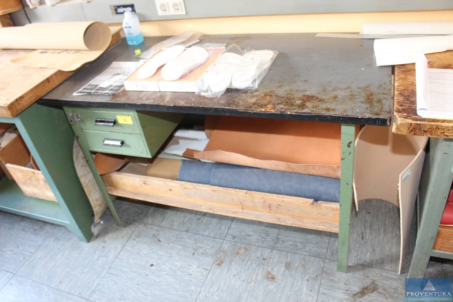 Werkbank Stahl/ Holz ca. 150 cm, Schubladenblock