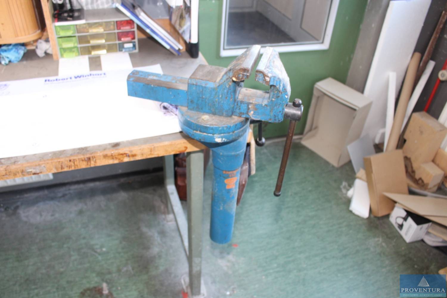 Werktischkombination bestehend aus 2 Werkbänken Stahl/Holz je ca. 195 cm, 2 höhenverstellbaren Schraubstöcken BB 100 mm, Schlosserschraubstock 125 mm, ohne Werkzeuge