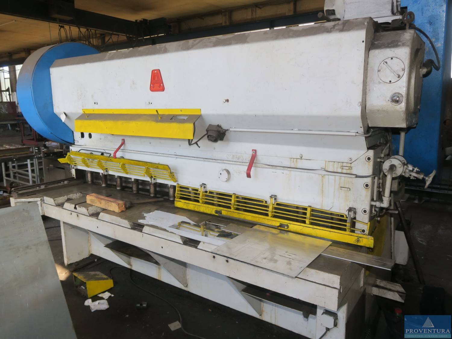 Excenter-Abkantschere VEB Gera ScTO, Bj. n. bekannt, 380 V, 18.5 kW, Gewicht 13.5 t, Arbeitsbreite ca. 250 cm, Materialstärke bis 12.5 mm, Gesamtmaß ca. 300x220x275h cm, Hinteranschlag