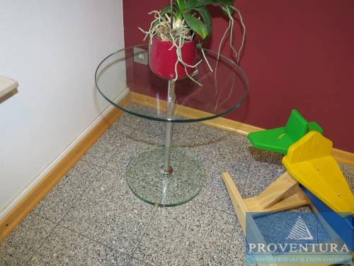 Design-Beistelltisch Glas ø ca. 46 cm, Höhe ca. 51 cm, angeschafft 2008 für € 480,- brutto