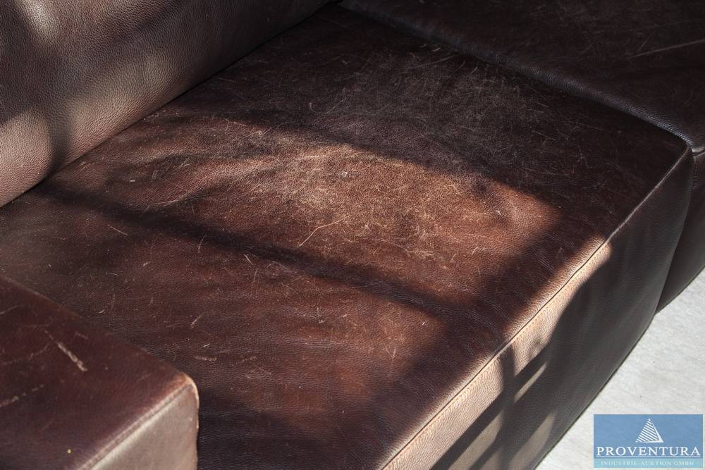 Ledersofa CIERRE Dolcevita small ca. 240x100x60 cm, Armlehnen ca. 30 cm, Leder braun, oberflächliche Gebrauchskratzer, Rückenkissen jeweils aussen Einhänger abgebrochen, Gebrauchsspuren, 2011 gebraucht angeschafft