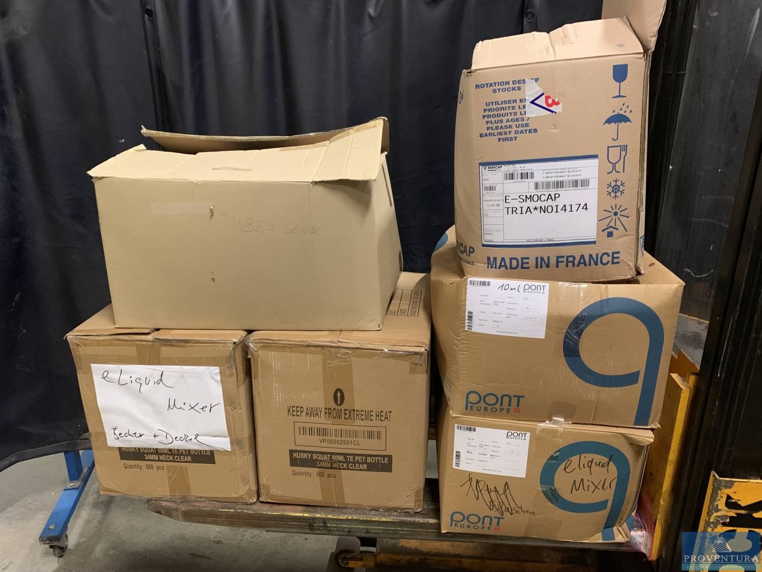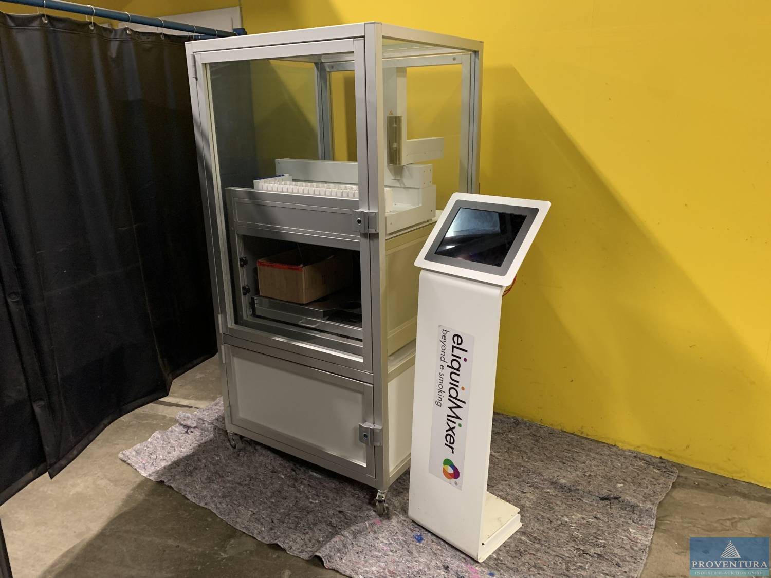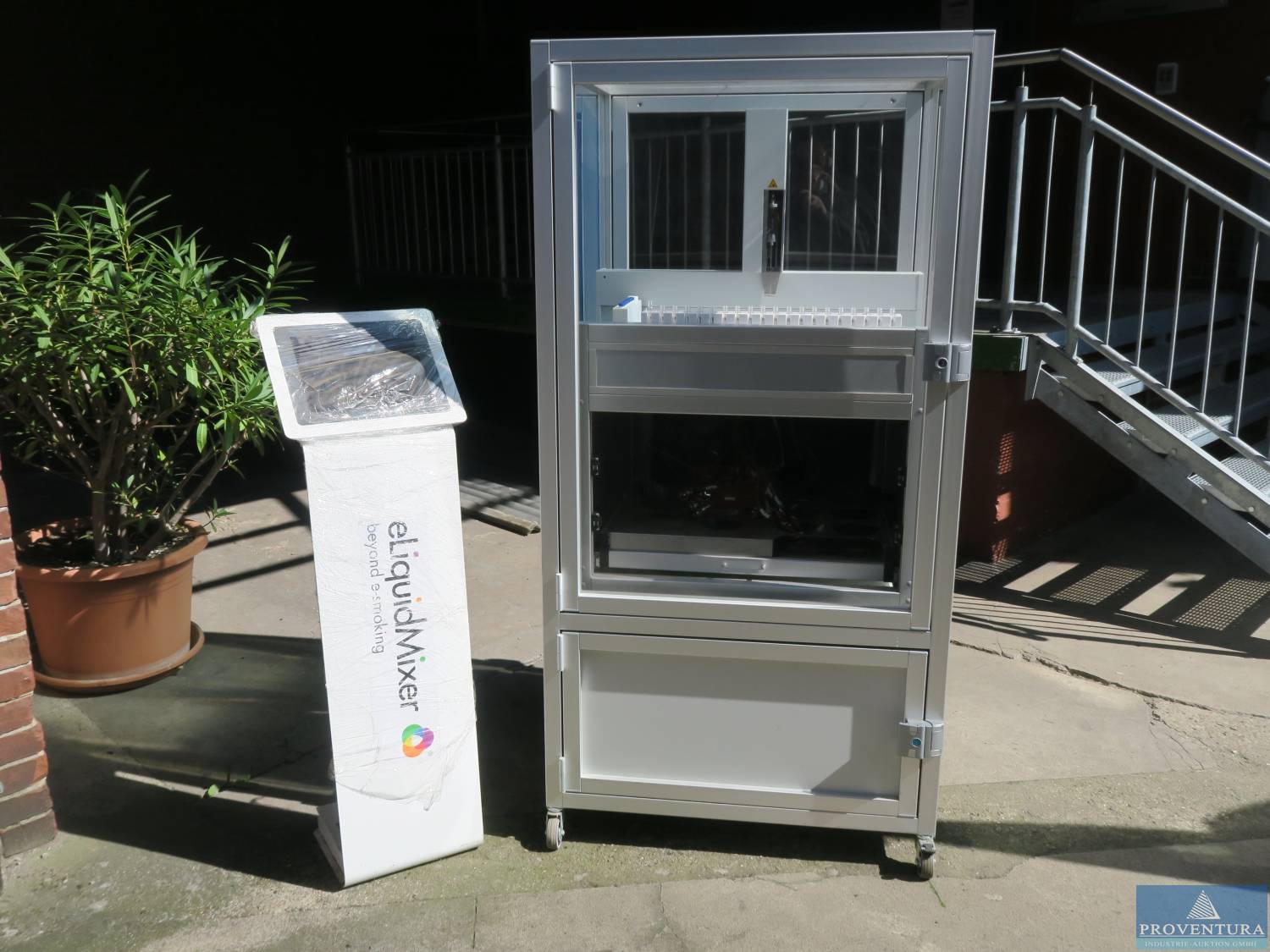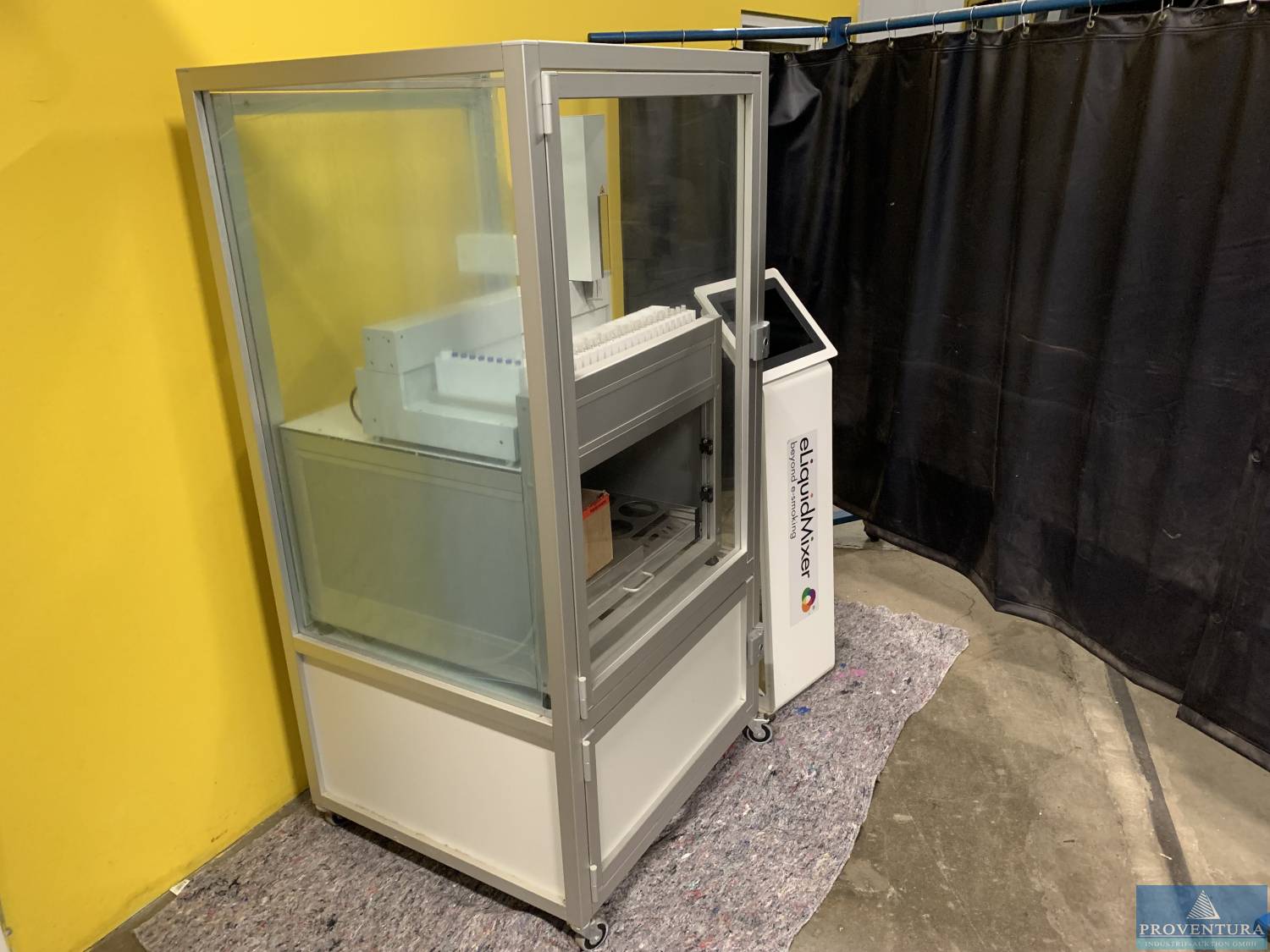 Dosierroboter mit separater Bedienstele eLiquidMixer, ca. 90x80x178h cm, rollbar, Aluminiumleichtbau, Vor- und Rückseite zu öffnen, Typ eLiquidMixer 1 160W App-Nr. 18010046, dazu Waage 2mag Mix 6 SN 11347004/3518, All in One PC Shuttle X50V6 ID 9025604601001 mit Tastatur, Barcode Printer Model TTP-225 SN T2217360113 mit Restmenge Material, IPad Model A1670 SN DLXV.21KJ263, Zugabe Restmenge E-Liquid Bottle 10ml (ca. 2 Kartons), 30ml (ca. 5 Kartons) und 50ml (ca. 2 Kartons) jeweils mit diversen Deckeln. Gerät wurde zur Dosierung von eLiquids konzipiert und eingesetzt. Die Herstellung von Substituten für Tabakwaren muss in einem Steuerlager erfolgen. Dazu muss der Hersteller Inhaber einer entsprechenden Erlaubnis als Steuerlagerinhaber sein. Diese wird durch das zuständige Hauptzollamt erteilt. Angeschafft 10/2018 für 24.500 EUR netto