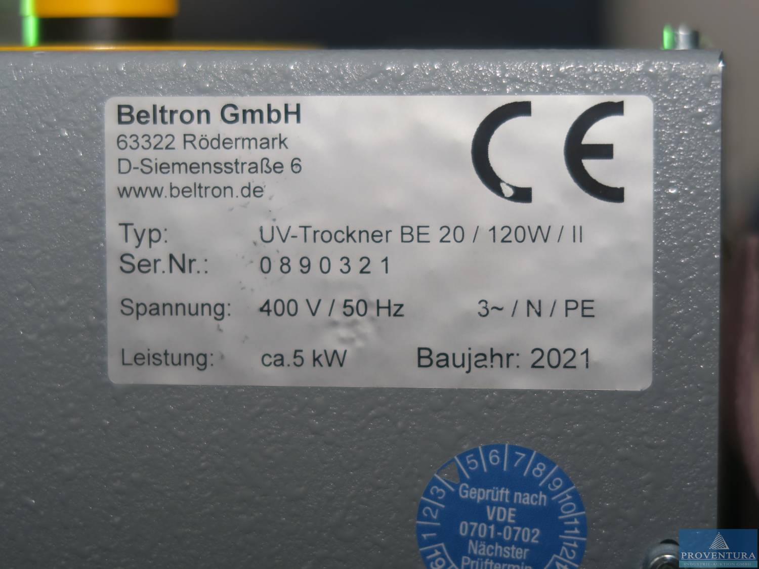 UV-Trockner BELTRON BE 20, Bj. 2021, 5 kW, 400 V, 50 Hz, SN. 0890321, Transportband, Kompaktsteuerung, angeschafft 2021 für € 15.550,- netto