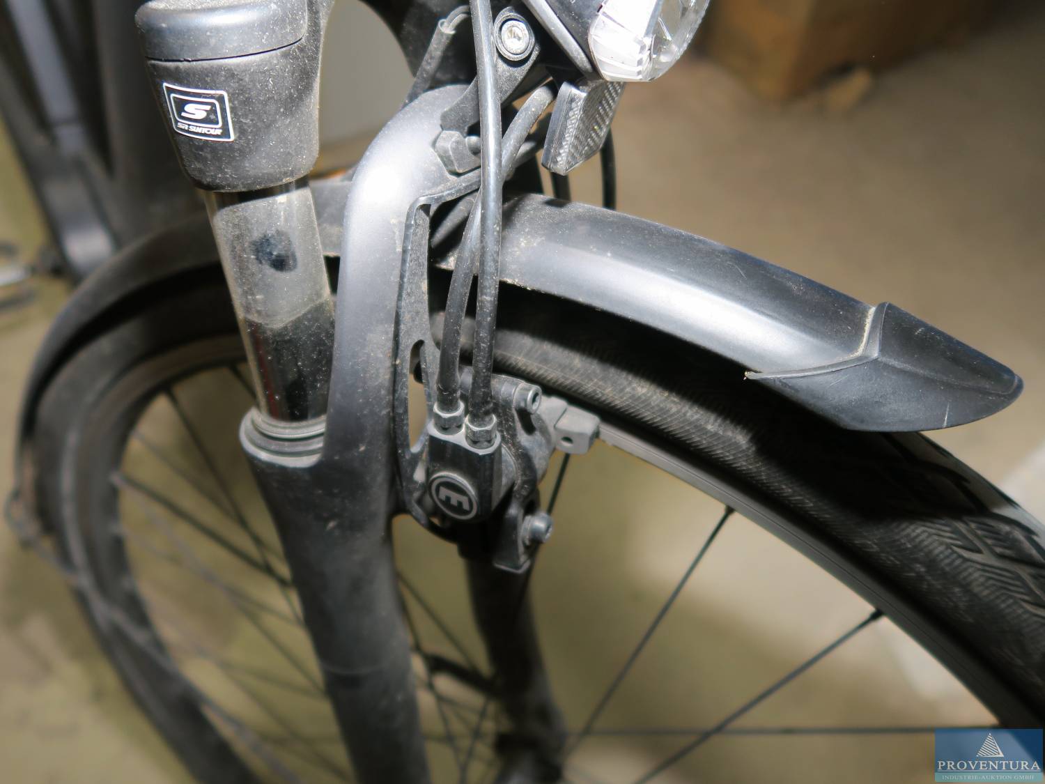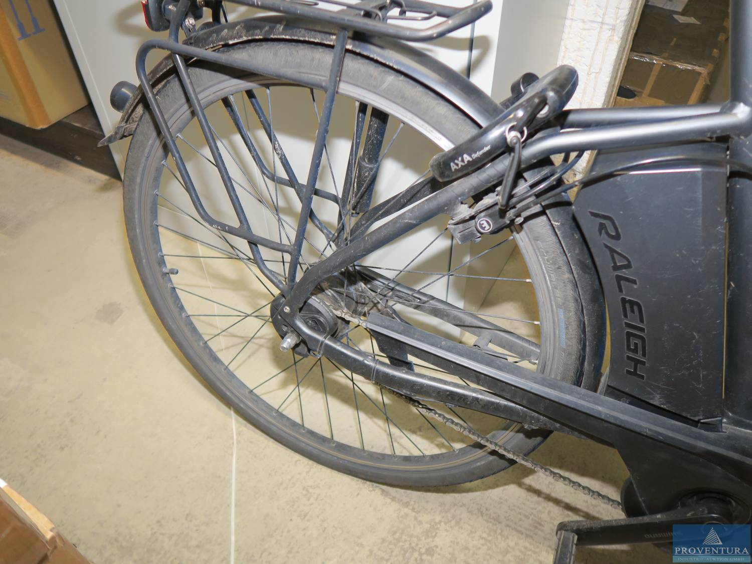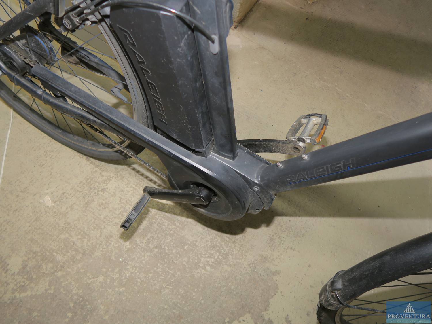 E-Bike RALEIGH Epac Tour Comfort Bj. 2017, 2.605 abgl. Km (26.04.23), Rahmengröße L 55 cm, elektronische Gangschaltung Shimano Steps MU-S705 DI 2, Mittel Motor Shimano Steps 0.25 kW, max. 130 kg, max. 25 km/h, Display Shimano, S/N Fahrrad 352646004, hydraulisches Bremssystem Magura, Akku Derby Cycle 621 Wh, 36 V, 17.25 Ah, S/N WF060119218, Ladegerät, 1 Schlüssel für Akku und Felgenschloss, Fahrrad aus Vermietung, hat Gebrauchsspuren, keine weiteren Unterlagen vorhanden
